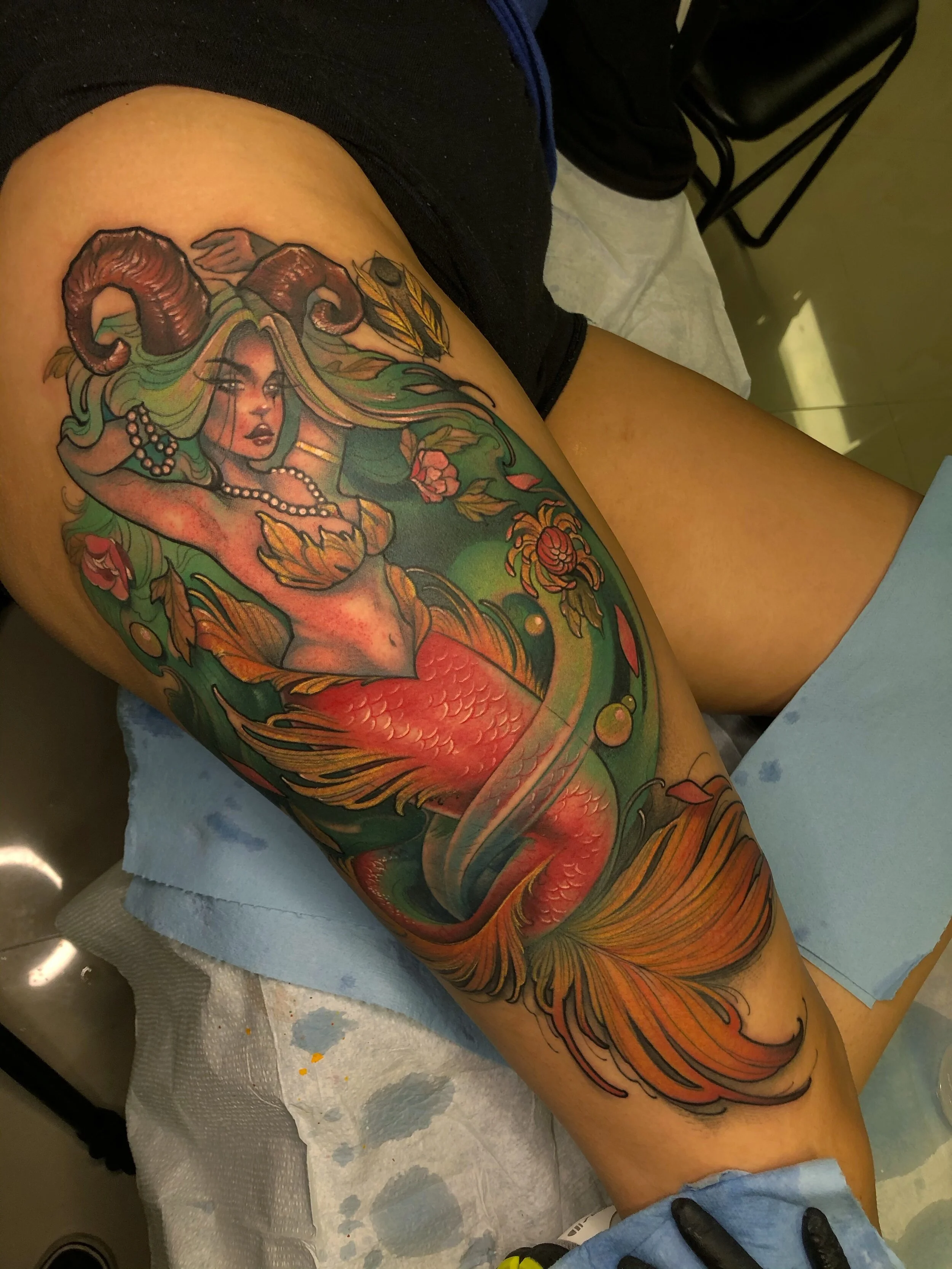 I’m Ceci, a Tattoo Artist located in the Rio Grande Valley (the REAL South Tejas). My tattoo work focuses on bold, illustrative designs. I appreciate a clean line, smooth shadin’, and funky designs. My aim is to apply painterly techniques to tried and true, classic tattooing. To all of my clients, friends, and family, big THANK YOU! <3